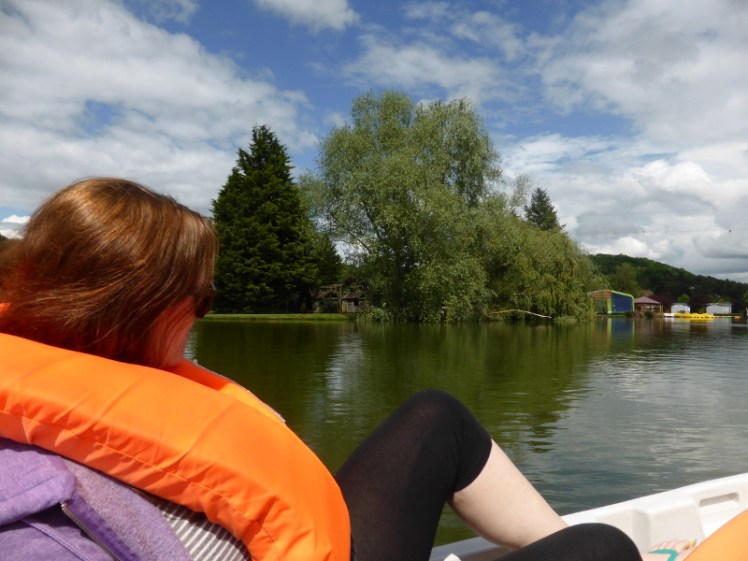 This campsite is based around a large-ish fishing lake, and has expanded that to two and a half fishing lakes and one paddling lake since I was last there, so one afternoon we hired a pedalo and spent a while on the water, as planned and with the camera safely in its case.