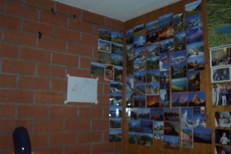 Number two was some postcards. My room had two brick walls and I’d taken to decorating them with an elaborate collection of postcards from across Switzerland.