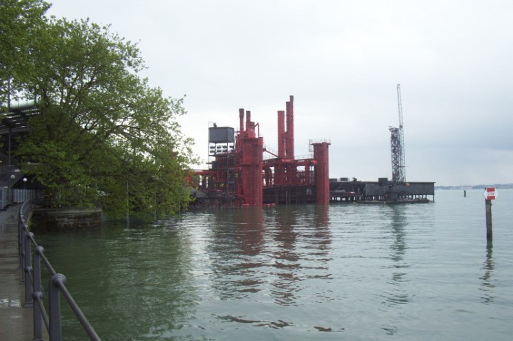 I wandered along the lakeside once I’d eaten my rolls, bought some panpipes at a market and then stumbled across something large and industrial. It surprised me because it was so big and ugly and obvious and as I walked, I managed to register the half-moon of theatre-style seats overlooking it without realising what was going on. I’d seen barrels leaking luminous green-yellow gloop into the lake, barrels floating away, the scene of the worst environmental disaster I’d ever seen and I was too horrified to make sense of it. Switzerland, dumping toxic waste in the lake? Switzerland?!
