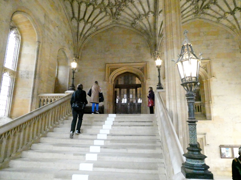 The stairs up to Oxford Christ Church’s Great Hall. Stone stairs under elaborate fan vaulting. Also the front steps of Hogwarts apparently.