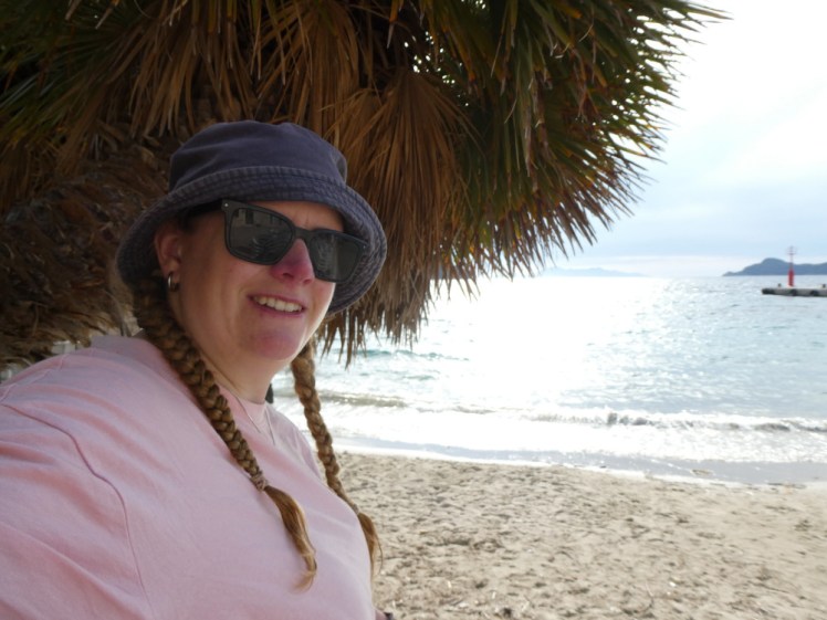 Oh, it was beautiful! I’d admired the sea from the ferry but now I was on it. Now I could trail my hands in the water, now I could bob over it, now I could look down into its depths. We were paddling from the north end of Lopud to the south end of Šipan, the next island up, and that meant dodging passengers boats and pleasure craft alike. The passenger ones were fine, you knew where they were going, but the pleasure craft could and did just turn randomly and cut across in front of you. In theory, I was taught when I did my RYA Level 1, non-powered craft take priority over powered but in practice kayaks are bottom of the food chain and they have to get out of everyone’s way. Plus, because this is effectively open to the Adriatic, there’s a bit of a chop between the two islands. Nothing dramatic but I know that only three years ago, this would have panicked me. Maybe I might even have capsized. Not now – now it’s fun to bounce over waves but I’m acutely aware of how far I’ve come in a relatively short time.