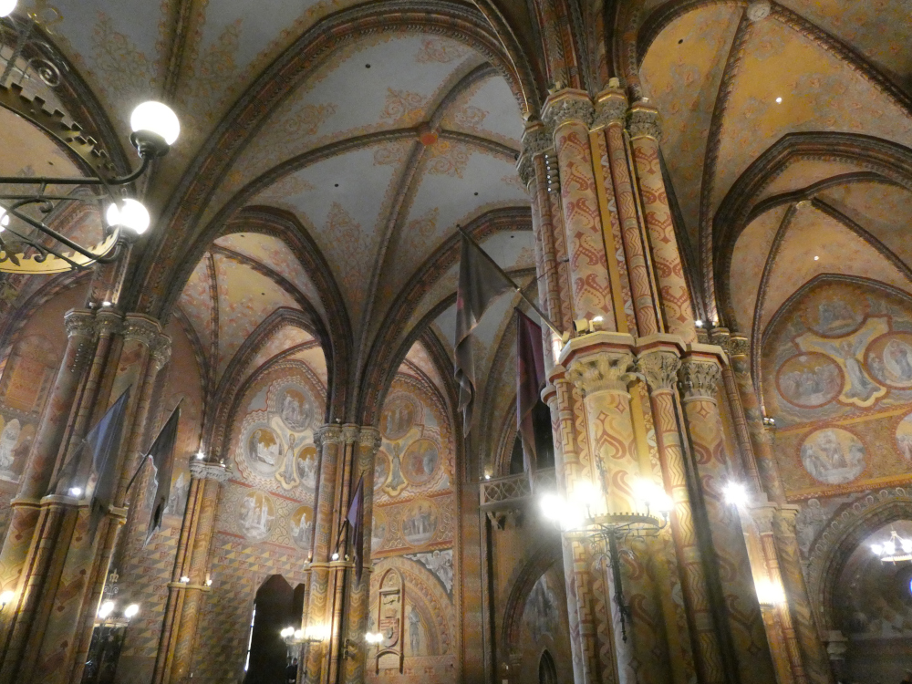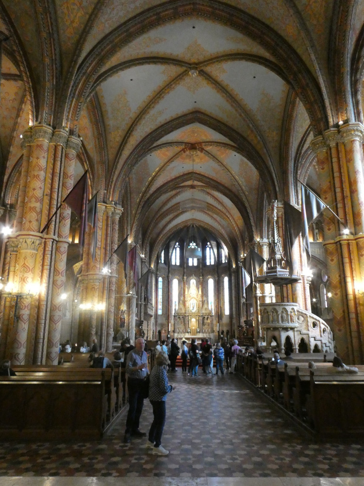 The highlight of my trip up there, though, was Matthias Church. I’d already admired its Gothic exterior and coloured tiled roof and since no one was queuing at its ticket window, I went to buy a ticket (2900ft / £5.80 without audioguide, 4500ft / £9 with) and went inside. The door is in the corner, at the top of a few stairs where people were stopping for photos as if there weren’t people right behind them trying to get in. Once I got in, got past the massive doors, I understood.