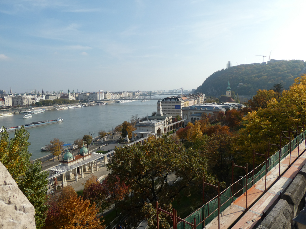 There are four main ways to get up the hill to these places. Undoubtedly the best is the funicular from the little square at the west end of the Chain Bridge. This isn’t included in your public transport ticket, if you got one of those. You have to buy a separate ticket, which is a return, whether you intend to use it in both directions or not. It currently costs 5000ft, £10, for a standard ticket, runs every five to ten minutes until 10pm and lifts you 50m above the city in 95 seconds. But when I was there on a weekday morning, the queue ran from the little terminus all across Clark Ádam ter and almost back down to the bridge. The funicular works as quickly as it can but it can only take 24 passengers on each trip.