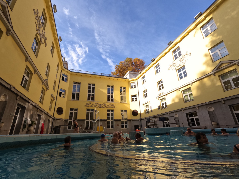 This is the labyrinth I was talking about. I think there’s quite a lot lurking within Lukács but I found it very difficult to get around. There are two outdoor swimming pools on a middle floor, with something of a terrace feel to them, despite being in a courtyard surrounded by the yellow building. Downstairs you’ll eventually find a kind of cafe and outside is the big thermal pool – it has two entrances so you might find your way into it from the other large indoor area. Further away, down some more corridors and past some inexplicable changing cubicles nowhere near the changing rooms, is the thermal suite, which is nowhere near big enough for how popular it is. Again, it feels very old and, like Rudas, I suspect if it’s not actually medieval, it’s certainly older than the rest of the building that’s sprung up around it. I liked the feeling of being somewhere local rather than somewhere touristy. Where’s it going to go in my ranking? Above Rudas but below Gellért, I think.