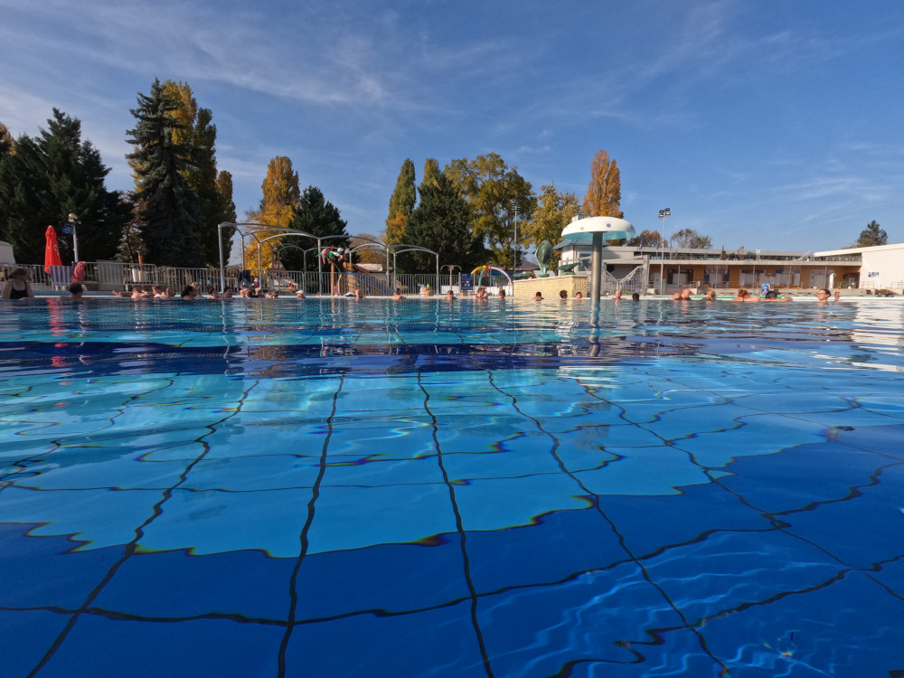Because Palatinus is heavily seasonal and there wasn’t much open, it felt quite quiet, although I can imagine it absolutely heaving in July and August. It was odd to go down two flights of stairs from the changing rooms to the indoor thermal area although I don’t know why – certainly easier than the labyrinth that some of the pools have been so far. Were they maybe carpeted? No, I don’t think so, but something felt weird. You can bypass the thermal pool to walk the mile down the hallway to the door out to the outdoor pool but the steps down to it go straight up the other side as well, so you can paddle through it to get to the halls. Yes, it’s a long way down that hallway to the door but given how much of the outdoor area is closed in early November, it might be that there are half a dozen doors closer to the centre of the building that you’d use to access the other pools that line the entire length of the complex. But in winter, there’s a smallish square pool where you can go and sit in the warm water and a swimming pool next to it. It’s nice. I think, even with 60% of it closed, that I liked it quite a lot. You know, I think I liked it more than Lukács, so that puts it second in my ranking.