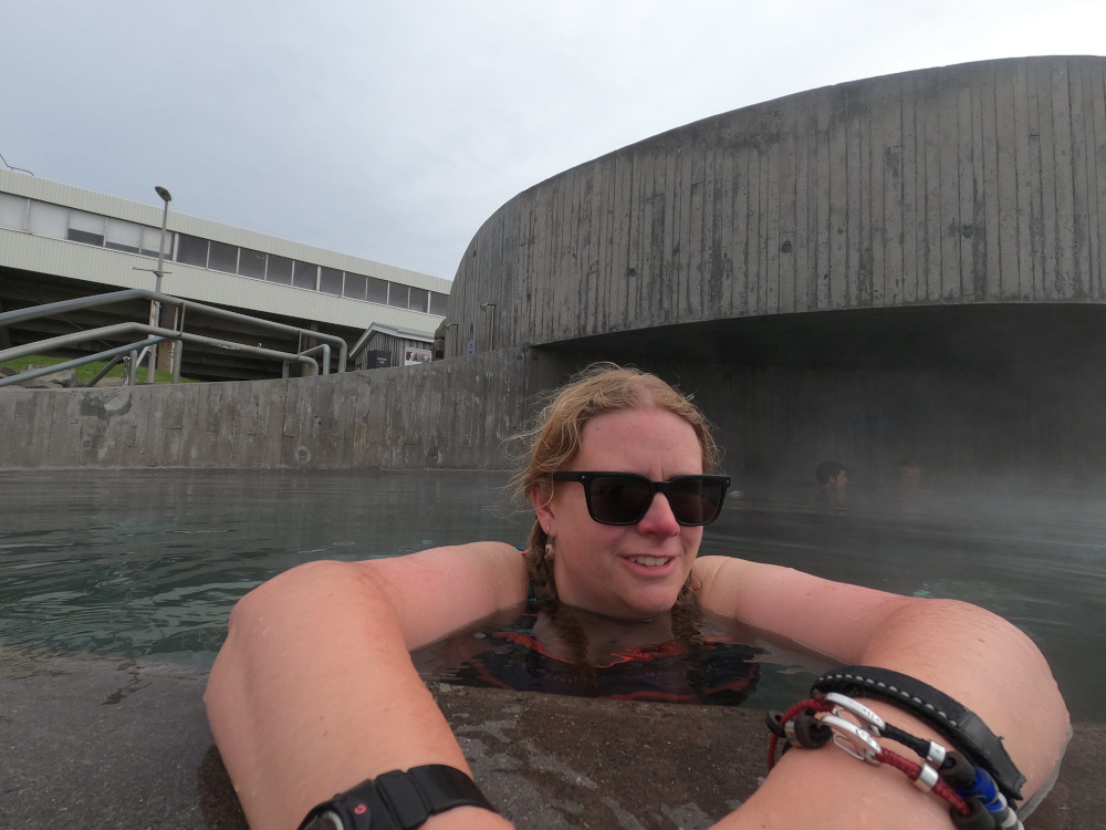 Put everything you don’t need in the pool – ie towel, shampoo etc – in the little rack you inevitably find somewhere near the shower (except at most of the ten spas: at the big ones, there just isn’t anywhere to leave those things because it’s too busy and at some of them, you grab one of their towels on the way back to the changing rooms). Take your swimwear and go to the showers. There will be a poster on the wall showing a human figure with certain areas circled in red – head, armpits, crotch, feet. Wash these areas without swimsuit and using soap. Don’t worry, Iceland will provide the soap. They’re not going to give you any excuse to skip the compulsory shower, like “I forgot my shower gel, oh well, I’ll just go filthy into the nice clean water”. I start at the top and work my way down to be sure I don’t forget any areas by skipping randomly around. This will feel very awkward and uncomfortable. The English-speaking world is not given to public nudity. British, American and Canadian tourists in particular will do their best to get out of the compulsory shower. “Oh, I didn’t see the sign”, “Oh, I didn’t know”, “Oh, I forgot” etc. Do it. You’re filthy. Even if you showered when you got up, you’ve got dressed and been out and about in public since then. Wash. If I can do it, you can do it. You can keep facing the wall, pretend no one else is there, eyes glued to the floor. But honestly, you don’t need to worry. No one’s judging your body in there – or if they are, they’re polite enough to not say it or let their faces say it for them. They’re just getting on with their own shower and getting out of there. And it’s not necessarily a bad thing to get a glimpse of actual human bodies going about in real life occasionally, just to remind you that what you see on TV, in movies, in magazines etc is not typical of your everyday ordinary non-millionnaire person.